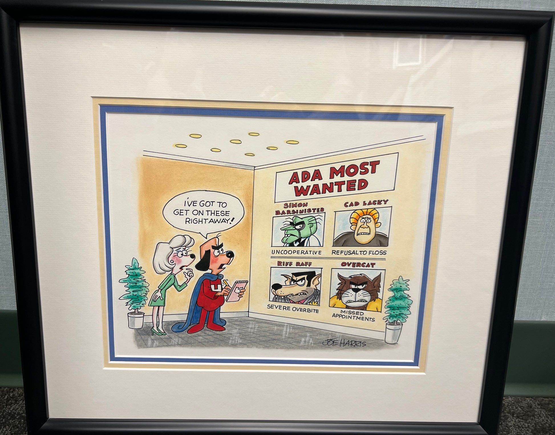 Joe Harris the creator of the Underdog Cartoon created a handful of original Dental themed artwork with his famous underdog characters.