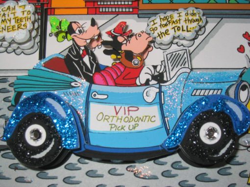 About 45 pieces of 200 pc Disney Dental School Edition were converted to the Ortho School version through hand embellishments at Fazzino’s Studios.