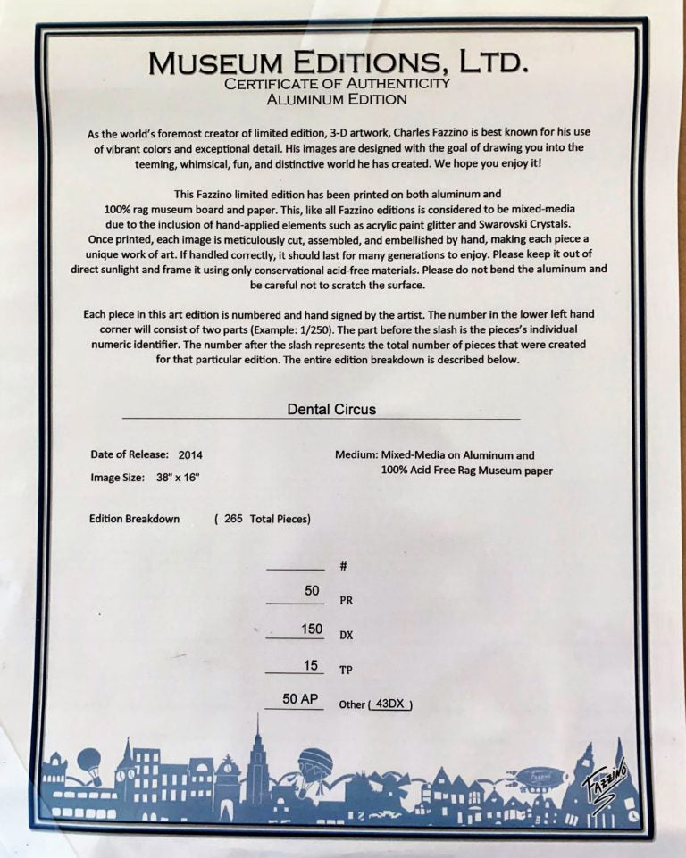 This is Fazzino first all aluminum dental themed limited edition and this piece is outstanding.