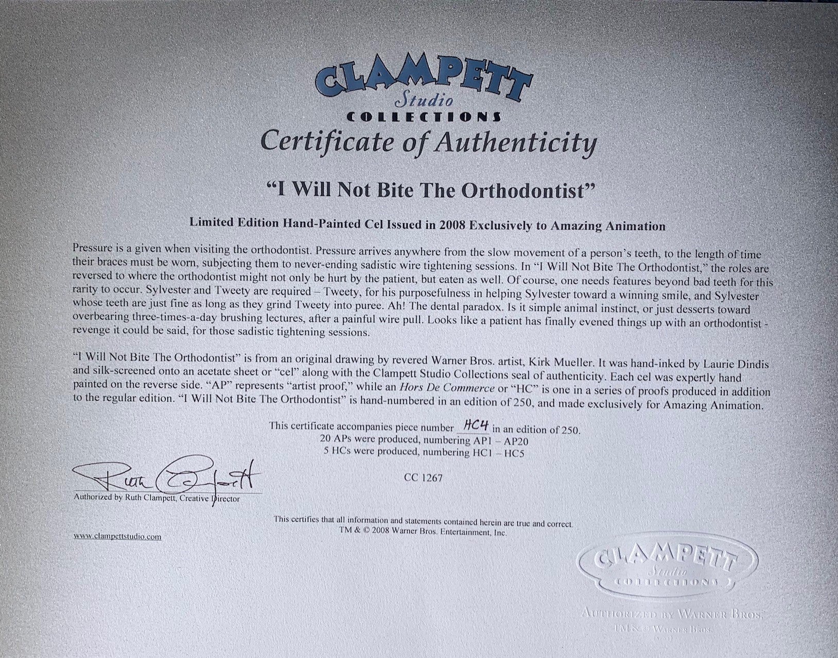 Original Clampett Studios Certificate of Authenticity