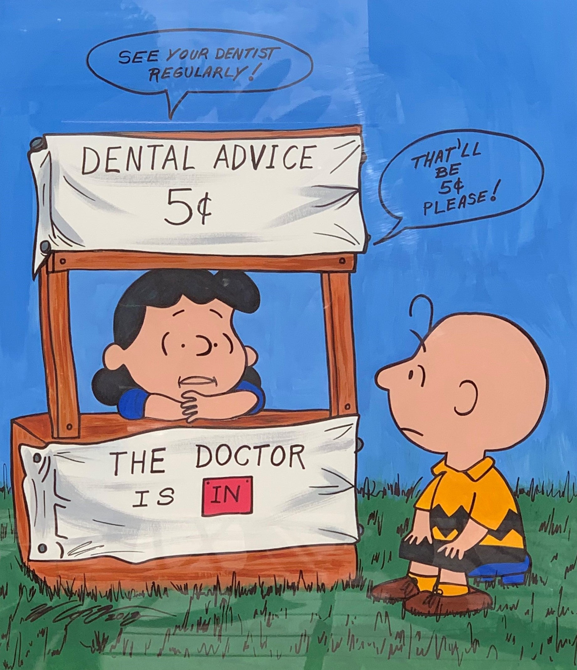 Great Dental gag take off of the famous "The Doctor is In" story line featuring Lucy Van Pelt and Charlie Brown.