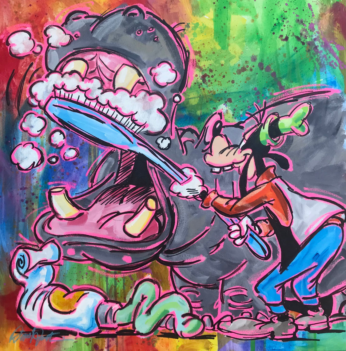 This is the second dental themed painting in this new "Neon Paint" style by Duerrstein.