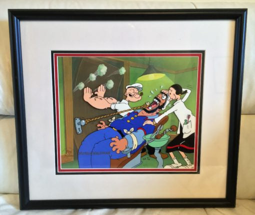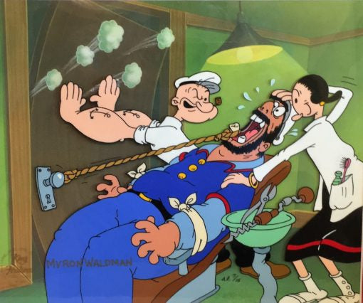 It is the first of Three Different Popeye Dental Themed Cels by Myron Waldman..